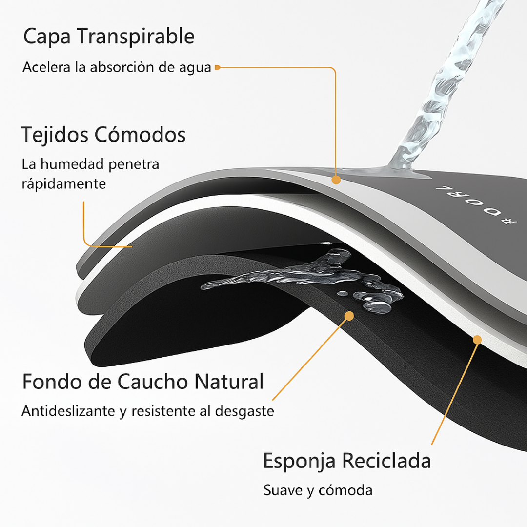 - Absorción instantánea: Superficie de barro de diatomeas que seca tus pies al instante 🚀.